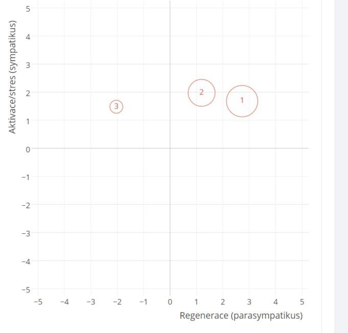 Výsledek prokazující výrazně zhoršený stav organismu a doporučující přerušení tréninku (č. 3) nebyl respektován. Následný trénink vyvolal akutní projev onemocnění, který společně s nasazenou farmakologickou léčbou přinesl "paradoxní reakci ANS" (č. 2, 1).