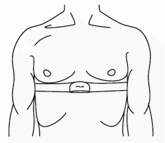 Elektrody na vnitřní straně pásu musí být dostatečně navlhčené – to platí i pro každé další používání měřícího pásu! (2).